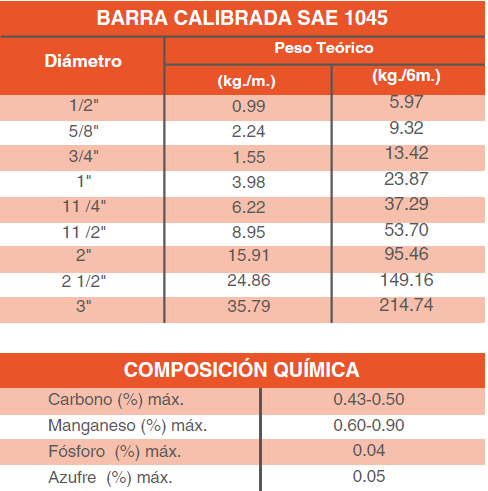 Producto de sección redonda, que se obtiene por laminación en frío, obteniendo una gran exactitud dimensional (DIN/EN 10278 h9) y buena calidad superficial. Tienen mayor resistencia en comparación con las otras variantes de acero SAE 1045. Es el acero de transmisión más común en el rango de aceros de carbono medio.