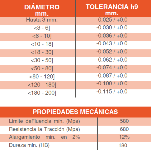 AISI/SAE 1045Tolerancia Dimensional DIN/EN 10278 h9
