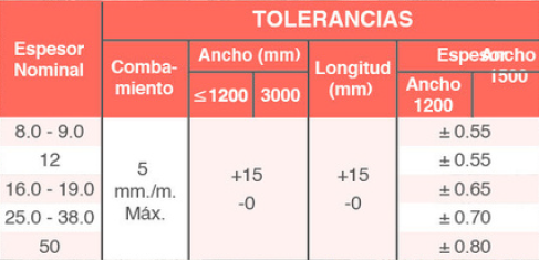 Se suministran en espesores y formatos según tabla adjuntaUSO