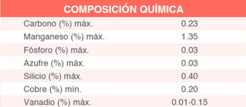 Acero estructural para puentes, de bajo carbono y alta resistencia estructural y buena resistencia a la Corrosión Atmosférica.
