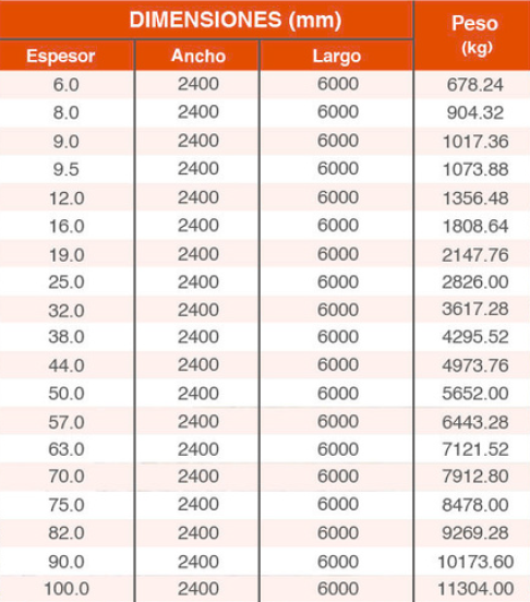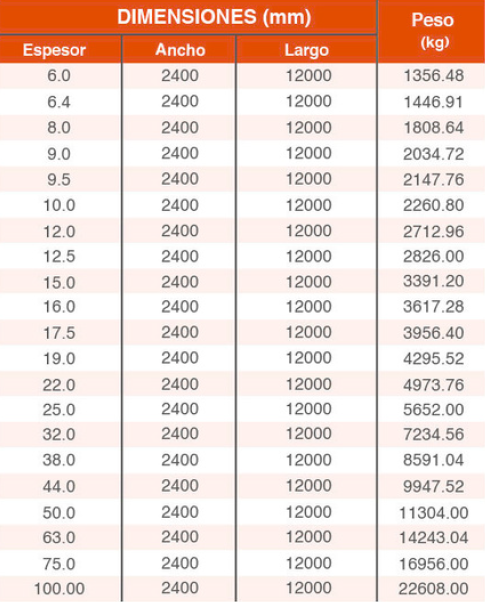 Plancha estructural de bajo carbono obtenido por laminación en caliente.